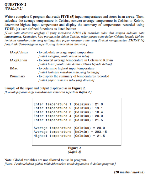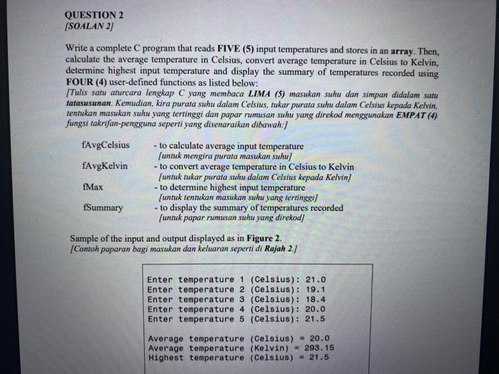 Solved Question 2 Soalan 2 Write A Complete C Program That Chegg Com