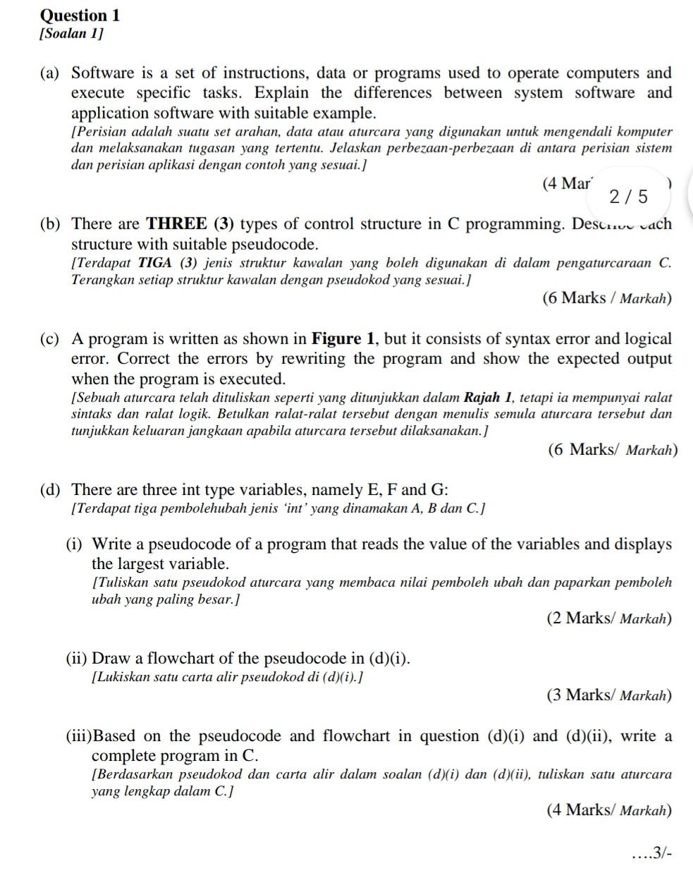 Solved Question 1 Soalan 1 A Software Is A Set Of Chegg Com